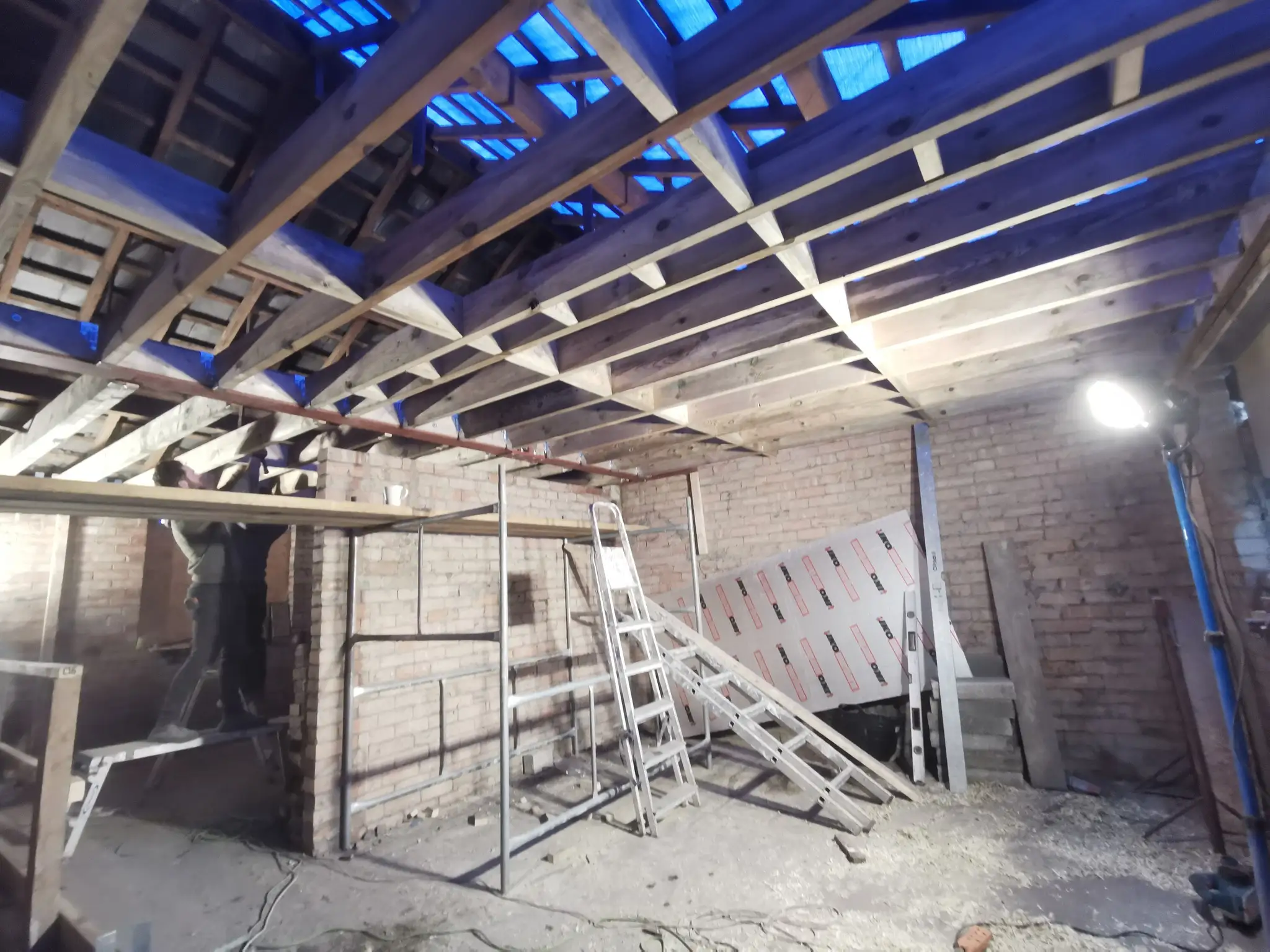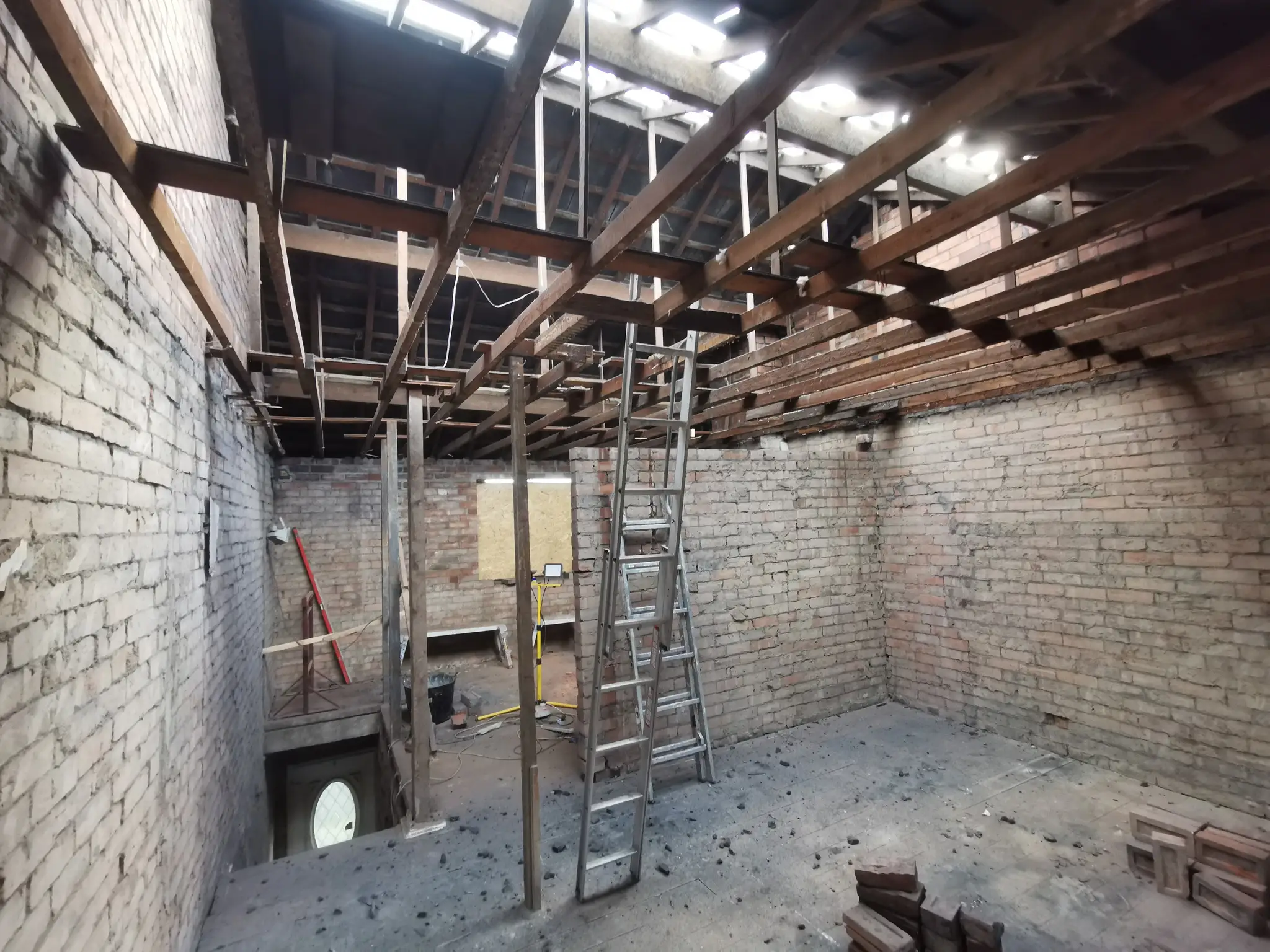 The only one cost efficient way to go through that job and achieve our targets is – take it back to brick and start again. This way we can find all the issues and get them sorted. Missing lintels, issues on brick walls, all rotten or damaged wood construction elements, rafters, floor joist… We have started from re roof, removing walls, removing chimney, apply all construction changes – create new house layout. This is the only way to not miss those important repairs, they will be costing triple later if missed on that stage.